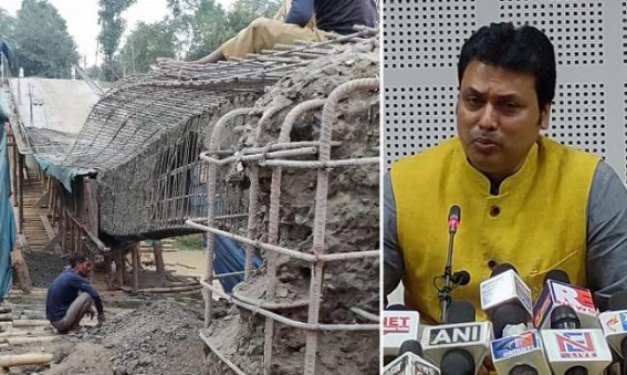 AGARTALA, Feb 1 (TIWN): From Covid medicine purchasing scam to seeking Commission from Flyover company what has not happened under Biplab Deb's tenure ? Another such massive scam exposed before Tripura Assembly Election in Tripura regarding construction works. The incident took place at Khayerpur, Kathal-Tila construction site where a new bridge was underway and on Wednesday morning it had collapsed. The construction started under former CM cum PWD Minister Biplab Deb who had brought modification in the tendering system. That is another matter that Biplab Deb’s some of the relatives were benefited with double license to such business deals through the backdoor. But who will take the liability of this scam ?