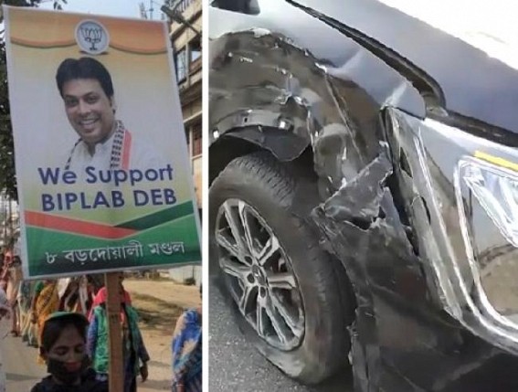 PHOTO : Biplab Deb's car was crashed in Haryana.