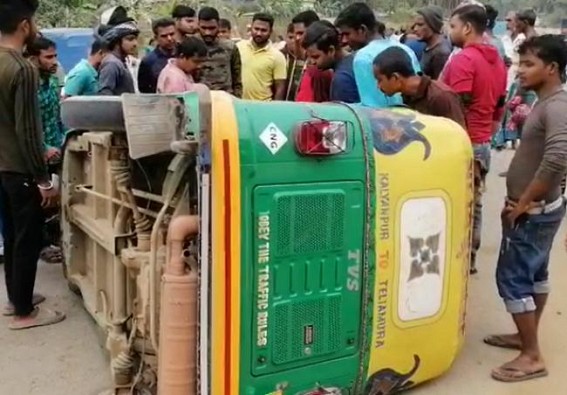 AGARTALA, March 17 (TIWN): A passenger auto coming from the opposite direction is hit by the cargo magic car, overturns and Asha crashes into another passenger auto from the rear.
