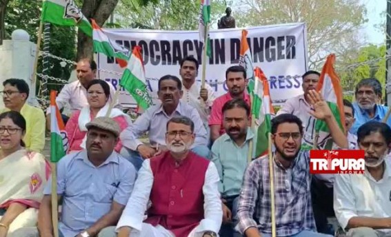 AGARTALA, March 26 (TIWN): As a part of nationwide protest, Tripura Congress Party organized a Satyagraha movement at the foot of the Gandhi statue adjacent in Circuit House area to protest against Rahul Gandhi's disqualification of the MP post.