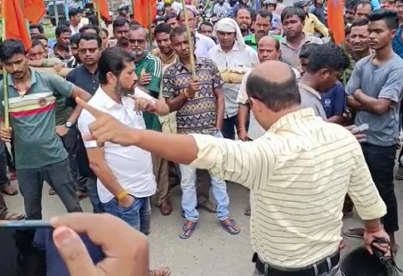 Alleging miscreants occupying Chandrapur head office of Bharatiya Mazdoor Sangh, Assam Agartala National Highway was blocked by Bharatiya Mazdoor Sangh.