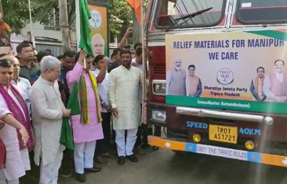 AGARTALA, May 17 (TIWN): Tripura BJP has sent relief materials to violence affected Manipur. Chief Minister Manik Saha himself was present in the flag-off program at Krishna Nagar Party Head Office. Talking to media, CM said that in coming days more materials will be sent to Manipur as per the need. Garments for children to elderly people, ration, milk etc were sent. CM added, “The state is badly affected due to violence. But, the situation right now in Manipur is under control but as the state is affected, it needs additional support and that’s why we are sending some relief”.