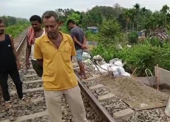 DHARMANAGAR, June 12 (TIWN): Alleging poor quality works, locals stopped Railway project work in Maiganga area of Dharmanagar, Krishnapur Assembly.