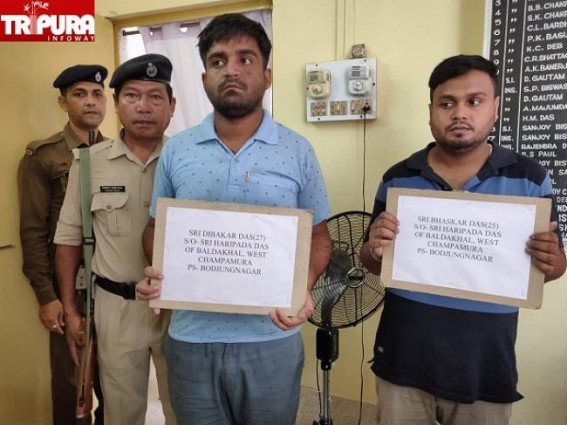 AGARTALA, June 30 (TIWN): In a major success, tow persons have been arrested by Agartala East PS Police on Friday in connection to the Baldakhal mob-lynching incident where Nandu Sarkar (40) was killed by people with accusation of cow-thief on the day of Eid. The arrested persons are : 1) Bhaskar Das (25), and 2) Dibakar Das (27). Both are siblings.