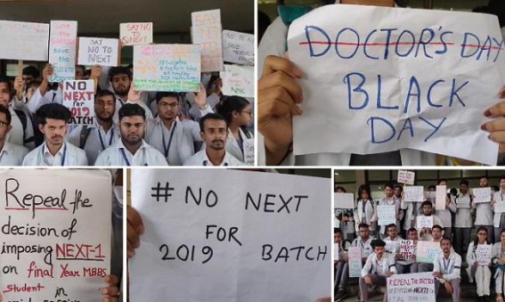 AGARTALA, July 1 (TIWN): National Exit Test for MBBS (NExT-1) imposition has put many students in trouble especially those who are in mid-session. Also, the students of Tripura have to travel to Slichar for such tests. Protesting against such unexpected tests’ imposition, students of Agartala Govt Medical College (AGMC) said that such troubles are given to students aiming to promote online coaching business. Students who in mid-session asked, how would they prepare for it within a gap of 5 to 6 months ? The agitating students said the NExT-1 tests should be imposed for the new batch and not the ongoing batches.