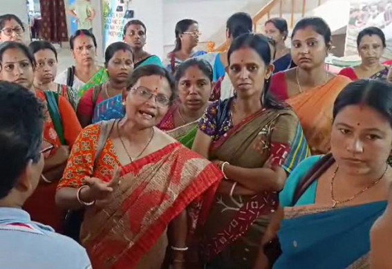 AGARTALA, July 18 (TIWN): Fund crisis in ‘Digital India’ troubling the employees and affecting the modernized set up’s vision of various sectors. Anganwadi workers of Tripura on Tuesday held a protest at the Director’s Office and said although online setup was started by Anganwadi centers but Govt is not giving fund to continue online system. The Anganwadi Workers warned State Govt for not working online from next month if pending arrears of Mobile Recharge Costs are not given.