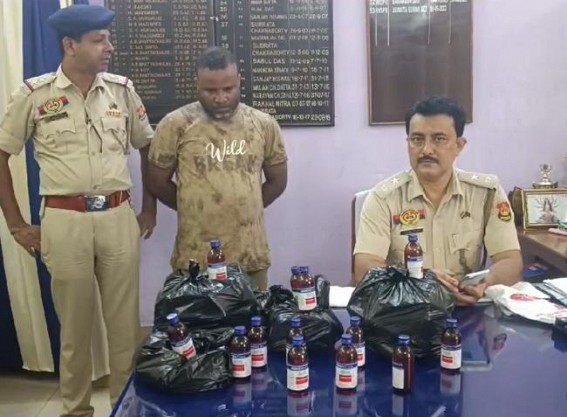 AGARTALA, Sep 12 (TIWN): West Agartala police arrested Mithu Das from Gangail road located bike repairing shop, after police raided his shop and seized huge quantity of phensedyl bottles.