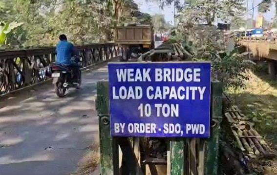 DHARMANAGAR, Jan 21 (TIWN): A bridge was partially collapsed after a heavyweight truck had driven over it putting normal lives in trouble. The incident took place in Dharmanagar Balaka Cinema Hall lined Jury Bridge. Talking to PWD SDO Gautam Roy, he told media, “Back in 2022, June 3rd, defects were traced on the bridge and after that the bridge was closed and an alternative route was opened. However, that could not prevent traffic jams and the traffic jam issue increased a lot. After that we opened the bridge once again but restricted heavy vehicles. It’s clearly written how much weight a vehicle can carry when plying over the bridge but yesterday night a heavy vehicle drove over it and the accident happened”.