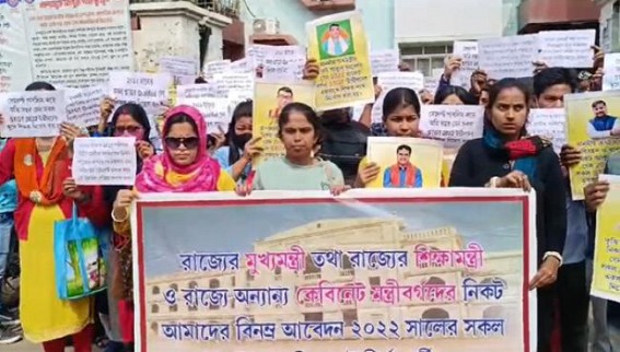 AGARTALA, Feb 1 (TIWN): Demanding 2022-STGT result publications and recruitment of graduate teachers, job aspirants staged a protest at the Education Department on Thursday. Talking to media, the job aspirants said, they are continuously pressuring the Govt to recruit them but no positive feedback has been received so far. “We are waiting since 2022, September month. The STGT result has not yet been declared. We checked the answer sheet after the examination and understood that we would pass the STGT examination. So many times, we placed deputation to the department. After a few days, election will be declared and they will say, they can not recruit due to election”, a job aspirant said.