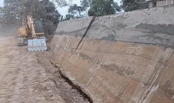 AGARTALA, Feb 6 (TIWN): Local people expressed extreme displeasure over the ongoing construction at Udaipur to Sonamura’s Srimantapur location after a retaining wall collapsed on 10th day of its construction. The local people said, the wall bent towards the opposite side, but what would have happened if it had bent towards this direction ? People might have been injured. The Udaipur-Sonamura road construction has started for a long time. Although right now it’s a national highway but the Govt has plans to convert it into an international highway but due to poor construction, the road areas might be at risk in future. The incident took place at Sonamura’s Rabinda Nagar Gram Panchayat’s Shantipalli area.