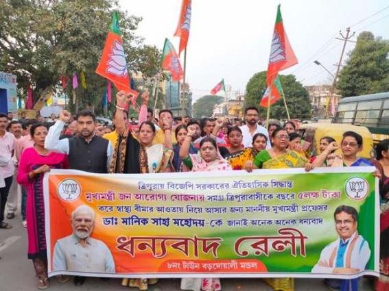 AGARTALA, Feb 16 (TIWN): Bordowali BJP organized a rally, thanking BJP led Tripura Govt for facilitating over 4 lakhs of people with CM Jana Arogya Yojana.