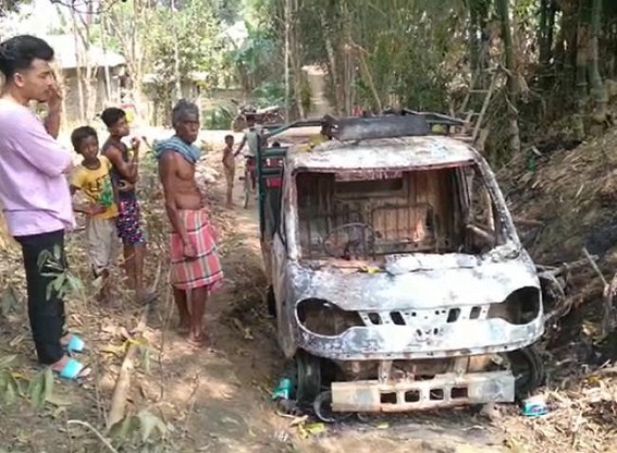 PHOTO : Car, scooty burnt by miscreants in Kamalpur. TIWN Pic March 16, 2024