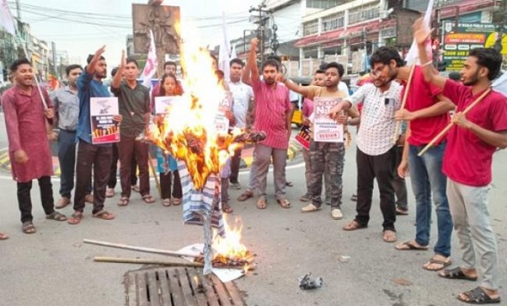 Today, SFI and TSU activists burnt effigy of Union Education Minister Dharmendra Pradhan.