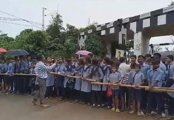 AGARTALA, June 29 (TIWN): Amid statewide teachers’ crisis allegations, students stormed road in protest on Saturday.