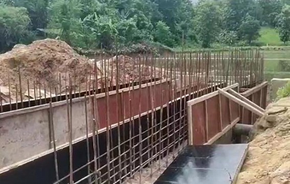 PHOTO : Alleging low quality construction work, public protested in Dhalai, Karamchara. TIWN Pic July 28, 2024
