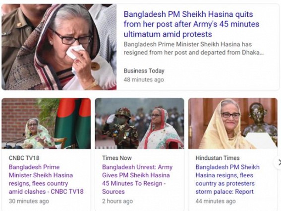 AGARTALA, Aug 5 (TIWN): Bangladesh Prime Minister Sheikh Hasina has reportedly resigned and fled the country amid escalating violence and protests demanding her resignation. However, there is no official confirmation yet.