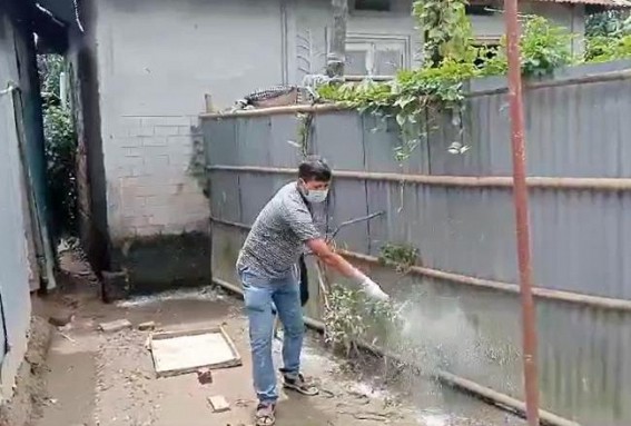 AGARTALA, Aug 25 (TIWN): CPI-M leaders on Sunday distributed phenyl, soaps in Ramnagar as water-logging has been creating unhygienic conditions in those areas.