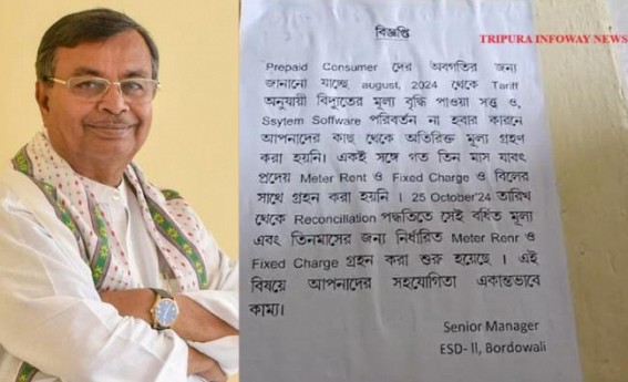 Bordowali office issued a notice, why bills might go higher from October 25 for prepaid users, saying, “……….even after the tariff was increased in August, 2024, the system software was not changed. Now with the system's upgradation, the bills will be shown higher as three months' pending meter rents, and fixed charges have been added through a reconciliation process.”