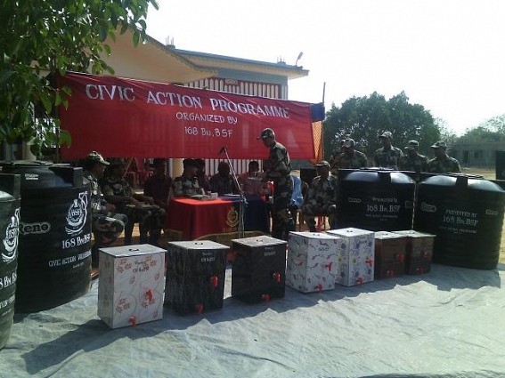 BELONIA, March 17 (TIWN): In an attempt to provide basic facilities like education and health to people living in border areas of Tripura, the Border Security Force (BSF), which runs a Civic Action Programme in border villages, the 168th battalion BSF on Monday distributed 8 sintex water tanks, 14 water filters at Devipur and Galachipa J.B. School.