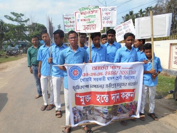 KHOWAI / AGARTALA, May 2 (TIWN): In an effort to help those that have suffered in Nepal, the students of Khowai boy’s secondary school are collecting funds for people affected by the earthquake. As Nepal has been receiving international aid, the students of Khowai boy’s secondary school have also come forward to help them.