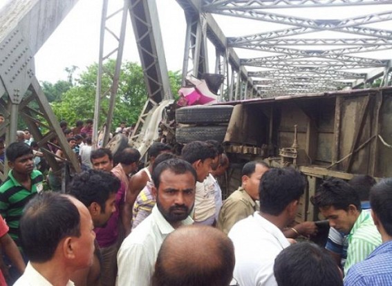 BISHALGARH, June 27 (TIWN): Once again a tragic bus accident left 25 peoples injured, condition of 7 persons are reported as very serious and admitted to G.B. Hospital. On Saturday afternoon, at around 2.00 pm a bus loading full passengers, bearing the number TR03-C-1264, in high speed was coming to Agartala from Udaipur and when it was on the way of Parimal Chowmuhani breeze, under Bishalgarh P.S. that the driver losing control over the bus. Hit the bus with the bridge and the bus immediately turned over and thus the tragic incident took place.