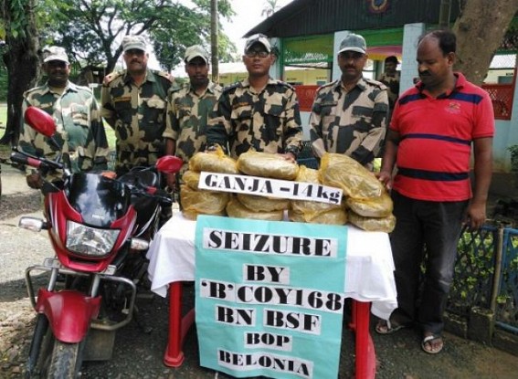 BELONIA, July 23 (TIWN): The Border Security Force (BSF) seized 14 kilogram ganja while allegedly being smuggled out to Bangladesh on Wednesday night in Belonia Indo-Bangladesh border.