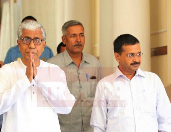 NEW DELHI / AGARTALA, Oct 1 (TIWN): Tripura CM Manik Sarkar was sidelined by Mamata to such extent that Kejriwal didn't keep any provision of one extra chair in dais for Manik Sarkar to sit, so hapless Tripura CM was forced to find his place among audience.Tripura Chief Minister Manik Sarkar was also a part of the deliberations on cooperative federalism, but was not allowed (Mamata’s instance) to participate in the public address handled by Kejriwal and Banerjee. Even though Kejriwal invited more than 12 Chief Ministers, only Manik Sarkar traveled to Delhi to attend conclave as Mamata Banerjee was already in Delhi for other works unrelated to conclave. Delhi Chief Minister Arvind Kejriwal and his West Bengal counterpart Mamata Banerjee on Wednesday came together to slam central interference in state affairs while acting against the spirit of cooperative federalism. Speaking here while participating in the "Chief Ministers' conclave on cooperative federalism", both leaders also hit hard at the issue of non-democratic use of central agencies like the Central Bureau of Investigation (CBI), Enforcement Directorate (ED) and the National Investigation Agency (NIA)."NIA was sent to West Bengal when two died in a blast during last (Durga) Puja season. State police took action. A few days ago, 100 died in a blast in Madhya Pradesh (Jhabua). If two die in Bengal, you (Centre) send NIA, as if we are all terrorists in the state but if 100 die in Madhya Pradesh, you gloss over it. This is discrimination," said Banerjee. Kejriwal concurred with the West Bengal chief minister over the misuse of central agencies to browbeat state governments.