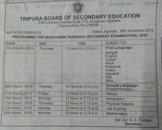 AGARTALA, Nov 27 (TIWN): The Higher Secondary and Madhyamik examinations by Tripura Board of Secondary Education (TBSE) commence from March 2 and 3 respectively. According to TBSE the Higher Secondary examination, both under old and new syllabus would continue till April 7.