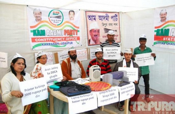 AGARTALA, Dec 26 (TIWN): Raising voice against the Union Finance Minister Arun Jaitley over alleged corruption in DDCA during his tenure, Aam Aadmi Party Tripura on Saturday staged protest at Orient Chowmuhani.