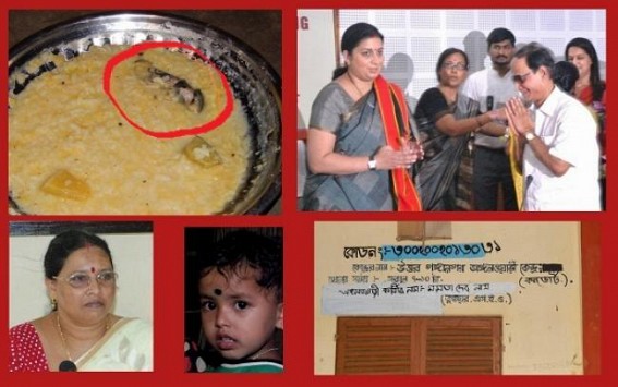 DHARMANAGAR / AGARTALA, Feb 18 (TIWN) : 3 days have been passed that a cooked rat was found in mid-day-meal, which was served to children at an Anganwadi Centre in Dharmanagar North Tripura. But no steps has been taken against the school authority for such a careless act, due to which many became sick at that place.Talking to the state Education Minister Tapan Chakraborty, he said, “Mid-day-meal issue actually doesn’t come under Education Dept. It is responsibility of the Social Welfare Dept.†However, Education Minister said that such things should not be repeated and surely Dept. will take action against the school authority. But surprisingly, when TIWN called the Social Welfare Minister Bijita Nath, she skirted the issue as if she doesn't know anything (even though she is fully aware of the incident), so she said, “I didn’t get any report regarding such issue. However, if official report comes, department will surely take actionâ€.