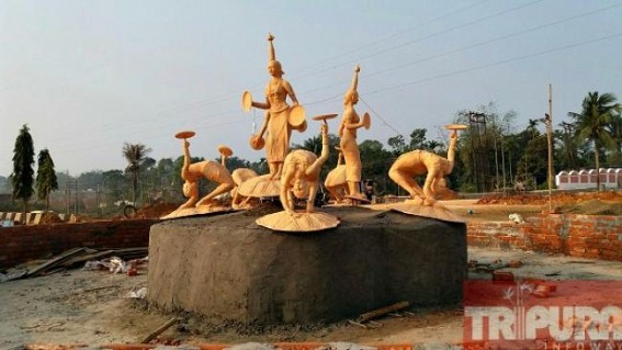 AGARTALA, Feb 25 (TIWN) : Before the railway engines to arrive broad gauge tracks, workers are now busy at Agartala Railway Station to give final touches of construction. Agartala Railway station is being decorated with cemented statues, and platforms are designing with various decorations.