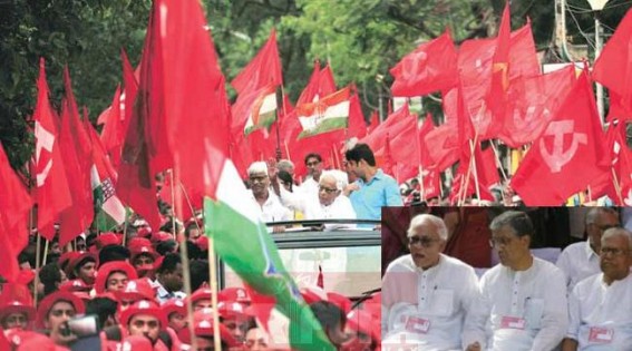 KOLKATA / AGARTALA, April 20 (TIWN): With the red flag fluttering alongside the Congress tricolour, an ailing former West Bengal chief minister Buddhadeb Bhattacharjee on Tuesday hit the campaign trail leading a huge road show in support of CPI-M candidates through the city's southern outskirts. Attired in his trademark kurta and dhoti, Bhattacharjee rode an open jeep flanked by party candidates from Tollygunge, Jadavpur and Kasba constituencies, as thousands of Left Front and Congress workers and supporters enthusiastically joined in. They sang, shouted slogans parodying the Trinamool Congress and exuding confidence of the Left and democratic forces forming the next government. Bhattacharjee, a patient of chronic obstructive pulmonary disease, had kept away from the heat and dust of the campaign so far following his doctors' advice not to undertake long travels, despite requests from all party district units to lead the election campaign.Tripura CM Manik Sarkar also joins the campaigning on Tuesday.