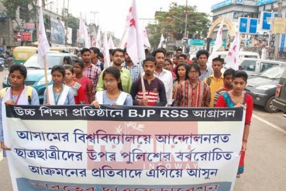 AGARTALA, May 4 (TIWN): After doing much dramas with JNU issue, now SFI has started another new drama with Assam Police activity against students at there. However, in the name of student federation few young boys and girls here forced the college and school students to walk on the road by chanting CPI-M’s slogans.