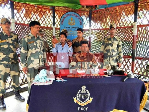 AGARTALA, June 12 (TIWN): 400 gram brown sugar was seized from a bus by 159th battalion BSF on Sunday afternoon at Dharmanagar ISBT area. The bus was travelling from Dharmanagar to Agartala. Reportedly, Brown sugar worth Rs. 30 lakhs was being shipped into the Capital City Agartala. BSF intelligence after getting informed, stopped the vehicle and nabbed the drug trafficker. Arrested drug trafficker has been identified as Giyas Uddin and presently kept in BSF camp at Dharmanagar Bishnupur Border area. BSF Jawans have also seized the vehicle with the number TR01B1458. However, BSF is going to handover him to Dharmanagar Police by evening, but before handing over they are keeping sample of the brown sugar for further investigation. BSF Jawans told media that before few days that, earlier at least 700 grams of brown sugar was also caught, but when via Dharmanagar Police Sation the brown sugar was sent to State Forensic laboratory, in laboratory test-result (????) it came out as rice powder(?) or wheat. That’s why samples are kept in BSF camp if same drama gets repeated by State Police & Drug Smuggling mafia again, said BSF Jawans.