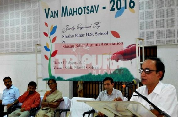 AGARTALA, Aug 11 (TIWN): Education Minister Tapan Chakraborty while attending the Van Mahotsav programme at Shishu Bihar school Agartala, he asked the students and other to go for plantation during the whole year, regardless any date.