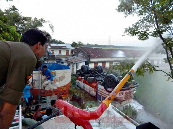 DHARMANAGAR, Sep 18 (TIWN): On the day of Viswakarma Puja, a terrible accident took place, when an oil tanker coming Gwahati turned over the road at Dharmanagar.