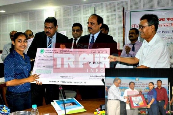 AGARTALA, Sep 21 (TIWN): Tripura Urban Development Minister Manik Dey on Tuesday chairing as the Chief Guest of AMC organized Dipa Karmakar’s felicitation programme, claimed high about Tripura Govt.’s struggle & attempts for emerging sports starts of state, but he ended the felicitation programme by giving a flower bouquet. However, on the same day UCO bank gifts Dipa & her coach Rs. 5 lakhs each of them.