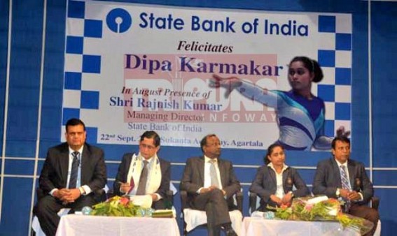 AGARTALA, Sep 22 (TIWN): Dipa Karmakar has been felicitated by SBI at Sukanta Academy, Agartala.