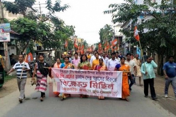 AGARTALA, Sep 27 (TIWN): State BJP held a protest rally in Agartala protesting against CPI-M cadres’ raising attacks on BJP members.