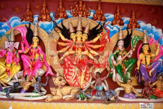 AGARTALA, Oct 6 (TIWN): On the occasion of Maha Panchami state gears up in brotherhood sentiments while welcoming Devi Durga on earth for long 4 days. But the Country is undergoing tremendous terrorism threats with the attack of Pakistanis on India’s border areas. Devi Durga who is considered as the destroyer of all omen powers------with her arrival the brotherhood sentiment has once again evoked the public to be together in Unity & regardless tribal, Bengalis, Hindus / Muslims all are celebrating Durga Puja. Pandal inauguration has been completed at various spots of Agartala and other subdivisions and on Thursday morning with ‘Dhaak’ people have cheered up to celebrate Durgotsav. Devotees had thronged to Puja Mandaps on Panchami morning offer prayersto Ma Durga. However, the original Puja to begin from Friday, after the Devi-Bodhon will be held on the occasion of Shashthi.