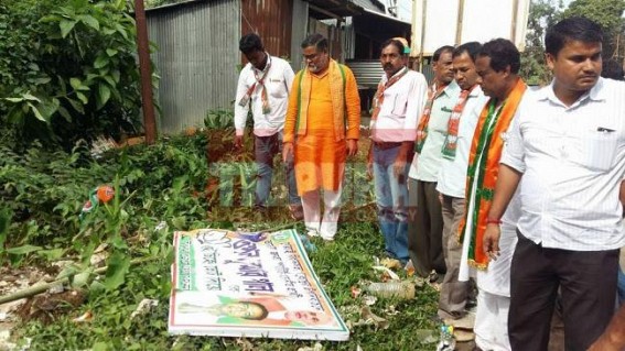 Reportedly, flags and decoration of BJP candidate of Khowai areas have been destroyed and thrown out in the fields and into drains.