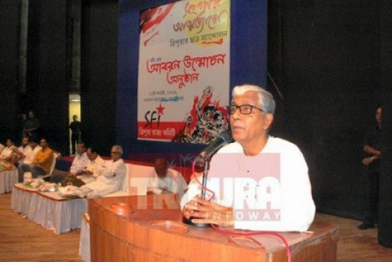 AGARTALA, Dec 10 (TIWN): Atlast Tripura Chief Minister didn’t spare the cultural stages also from his politics. As the artists said that drama is always form of protest so honourable Chief Minister prescribed Tripura artists script material and gave political direction and where, how they should go. Addressing at Rabindra Bhawan, when everyone discussed about various challenges faced by the artists due to the popularity of theatre is lessening in the digital Era, Chief Minister Manik Sarkar said, “The problem of unpopularity of drama lies not actually in other things, but it’s controlled by politics. Chief Minister before other state delegates said that an form of art should have target to make things positive and to fight against the roar of false criticism. Chief Minister’s speech clearly declared that he is sick of the continuous criticism, raising against him.