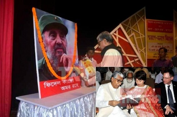 Manik Sarkar with his morally-corrupt brain and poor memory continued Fidel ‘Bhajana’ by uttering Goebbels lies that “although America did much enmity with Cuba but more than 200 doctors are freely serving at America and this is call humanity, said Sarkar as a part of Anti-Capitalist speech. India also needs such a revolutionary like Fidel.”