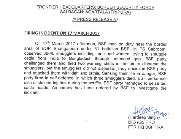 Tripura Infoway’s on-spot investigation found BSF’s official press release is the correct story and all other stories propagated by CPI-M and its MPs like Jiten are not only blatant false but with the sole aim to defame national security forces who are dedicatedly protecting the nation, its international borders.