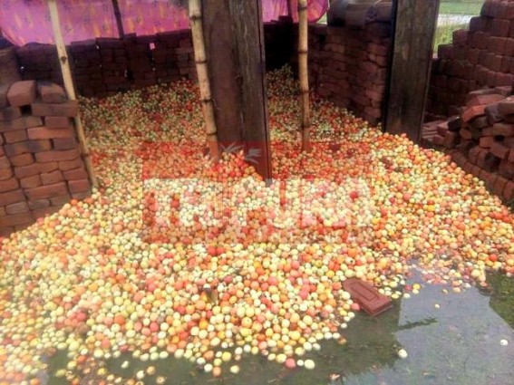 Kachucharra farmers under Dhalai District are suffering heavy losses. Several farmers, who took loans for farming, were deprived at large from a minimum profit. During the last couple of days rains and hailstorms have damaged the production of vital vegetables with the farmers keeps hand-head across the rural areas of the state .The vital production like tomatoes, potatoes, watermelon cultivation and others have been damaged at large due to the monsoon rain and thunder storm.7000 Kg Tomato were damaged under water in a family in Kachucharra. Moreover no such cold storage .is available in remote place like Kachucharra.
