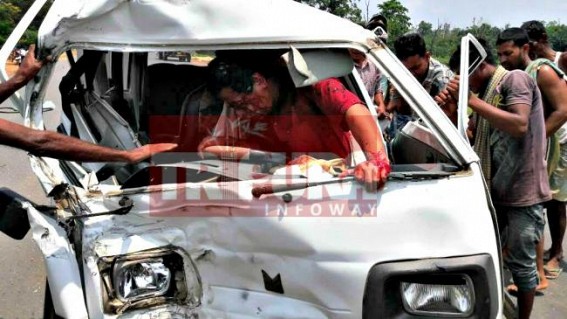 AGARTALA / UDAIPUR, May 11 (TIWN): Once again a critical accident took place on National Highway on Thursday, left one seriously injured.The injured person has been identified as Dharma Bijoy Jamatia, S/O-Aranyapada Jamatia from Maharani Hatichara area. The incident took place at Peratia Bazar, near Garji when a Maruti and a tipper vehicle with sands hit each other out of reckless driving. Getting informed police rushed to the spot and took the injured person at Gomati Dist Hospital. But seeing his condition critical Doctors immediately referred him to GB hospital. His condition has been reported as very serious.However, the eye witnesses said that the tipper car was in very high speed had hit the Maruti (TR030400).On the other hand the tipper drivers (No-TR01AB1775) has escaped from the spot. Police have seized the vehicle.