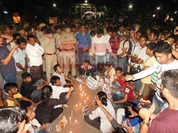 AGARTALA, May 13 (TIWN): TIWN correspondent, photo journalists stayed till midnight in front of West PS (Police Station) to record the grave pain and frustration of Anuara’s friends who wailed for her justice, sat on road with candles blocking West PS entrance at Post Office Chowmuhani till wee hours on midnight (early hours Saturday). Anuara’s friends cry failed to wake up Chief Minister and other Ministers, Opposition leaders who live within half km of Post Chowmuhani. From DGP to Chief Minister all washed off their hands so hapless West SP Abhijit Saptarshi stayed till midnight to handle this sensitive protest against State’s apathy on crimes against women.
