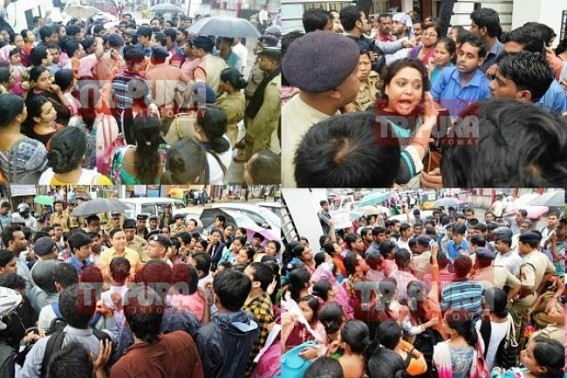 AGARTALA, June 1 (TIWN): After B.Ed undergoing students failed to meet the Education Minister in the morning at his residence, the agitators gheraoed Higher Education Office and locked the main gate. According to report, Minister Tapan Chakraborty had left his residence in the early morning to join few programmes at Kailashahar where the Chief Minister also will remain present. As a result, the resented undergoing B.Ed candidates in demand of extending the application submission date and allowing them to sit in the next TET gheraoed Higher Education Office on Thursday office hours. Sadar SDM S. Choudhury tried to manage the situation asking the students to hold peace but the agitators were unready to unlock the gate unless their demands are fulfilled.