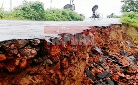 PHOTO : Road collapses at Sonamura. TIWN Pic July 25