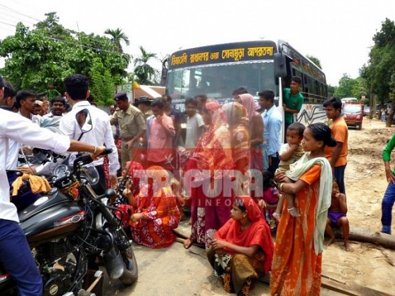 PHOTO : Locals block road at Sonamura. TIWN Pic Aug 2